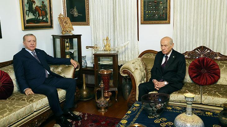 MHP Genel Başkanı Bahçeli, Türkmenbeyi Caddesi’ndeki evinde gerçekleştirilen görüşme öncesi, Cumhurbaşkanı Erdoğan’ı kapıda karşıladı. Cumhurbaşkanı Erdoğan ve Bahçeli, tokalaşarak gazetecilere poz verdikten sonra görüşmeye geçti. Ankara’da Bahçeli’nin konutunda gerçekleşen yılın 6. görüşmesi yaklaşık 40 dakika sürdü. Görüşmede uçak kazası ve Terörsüz Türkiye süreci ele alındı.