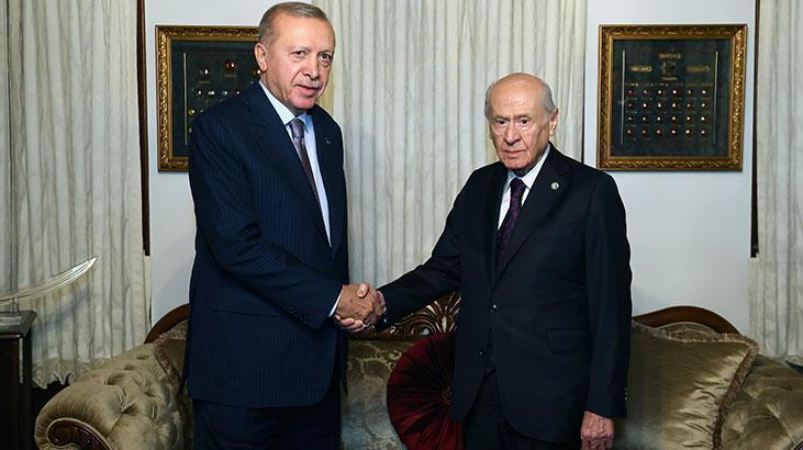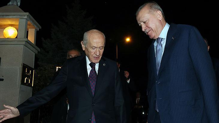 MHP Genel Başkanı Bahçeli, görüşme sonrası Erdoğan’ı konutun kapısından uğurladı.