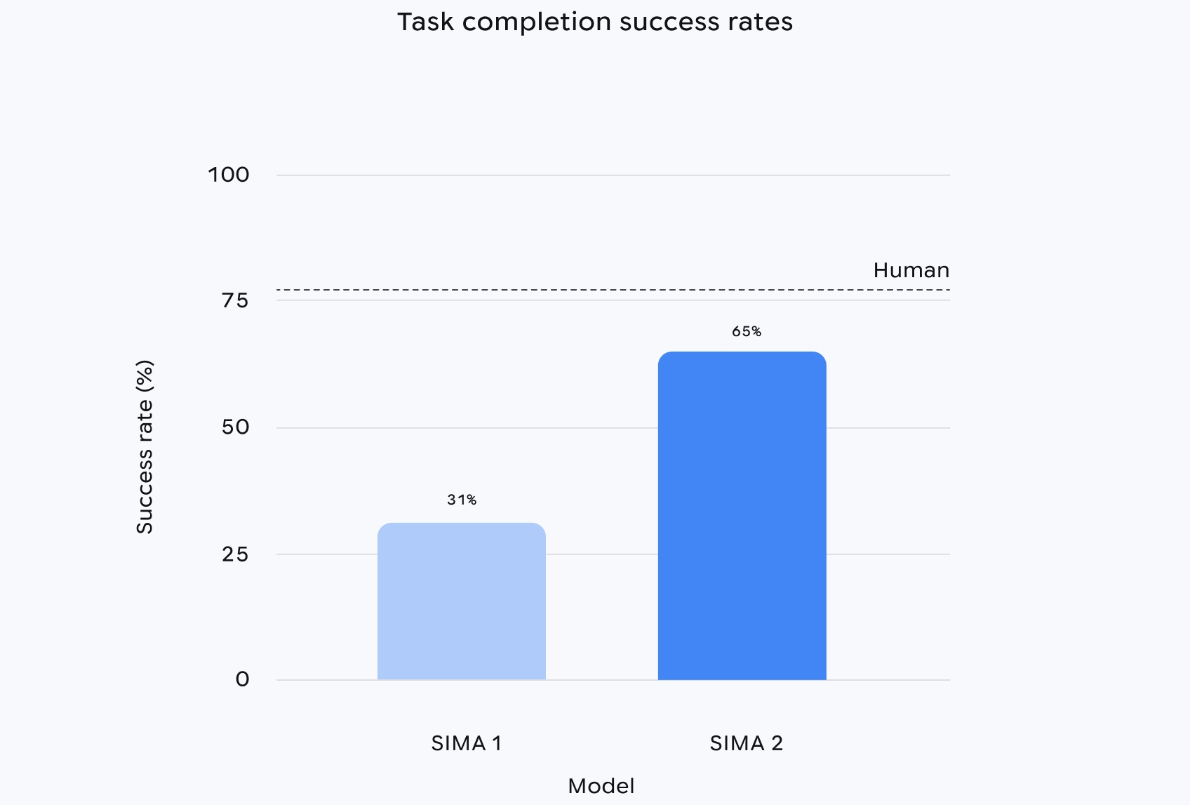DeepMind, ilk versiyon olan SIMA 1’i yüzlerce saatlik oyun görüntüsüyle eğitmiş ve ajanın çok sayıda 3D oyunu insanlar gibi oynayabildiğini göstermişti. Ancak SIMA 1’in karmaşık görevleri tamamlama oranı yalnızca yüzde 31 seviyesindeydi. Aynı görevlerde insanlar yüzde 71 başarı sağlıyordu. Bu sınırlılıkları aşmak için geliştirilen SIMA 2 için yeni ajanın hem daha genel bir zeka düzeyine ulaştığı hem de kendi deneyimlerinden öğrenerek kendisini geliştirebildiği belirtiliyor.